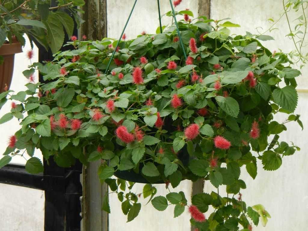 Акалифа хиспида, щетинистоволосистая или «лисий хвост» привлекает в первую очередь своими соцветиями. В комнатной культуре используют только женские растения, у которых бархатистые поникающие соцветия напоминают меховые плети яркого красно-пурпурного окраса. В длину они достигают полуметра, элегантно свешиваются между крупными листьями.