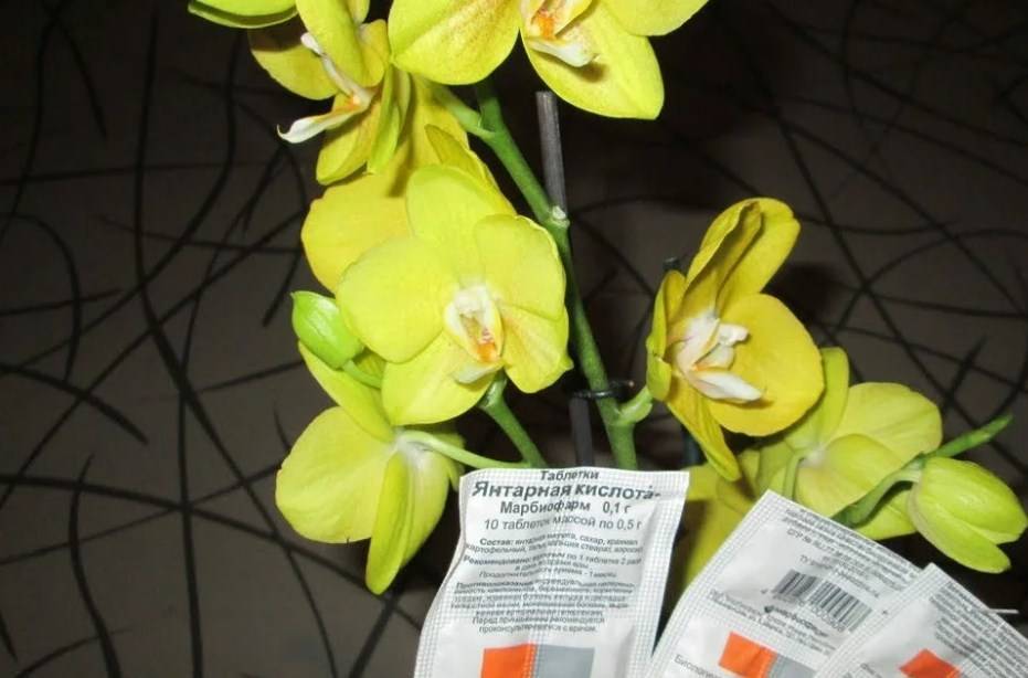 Когда орхидея начинает терять тургор, необходимо принять срочные меры, чтобы растение получило наименьший ущерб. Проще всего использовать янтарную кислоту. Для комнатных орхидей этот вариант подходит идеально. Пользоваться с учетом рекомендаций: