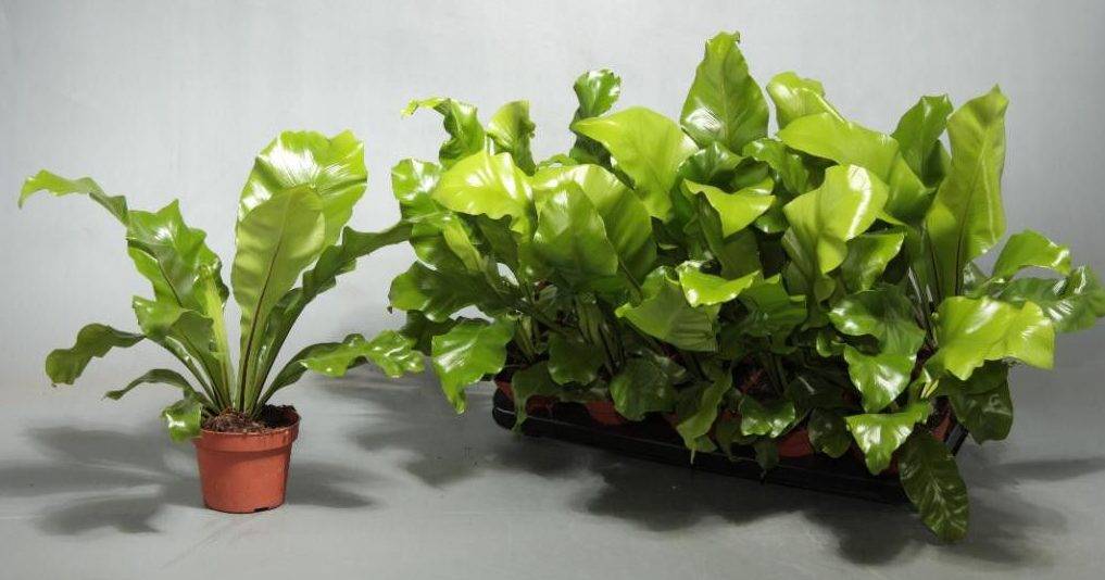 Второе название этого сорта — асплениум гнездовой, получил он его из-за компактного строения. Листья его небольших размеров, достигают 50 сантиметров в высоту, раскидываются в разные стороны. Имеют волнистую структуру на боковых поверхностях. Цвет яркий зеленый с серебристым отливом. Ширина листьев до 15 сантиметров.