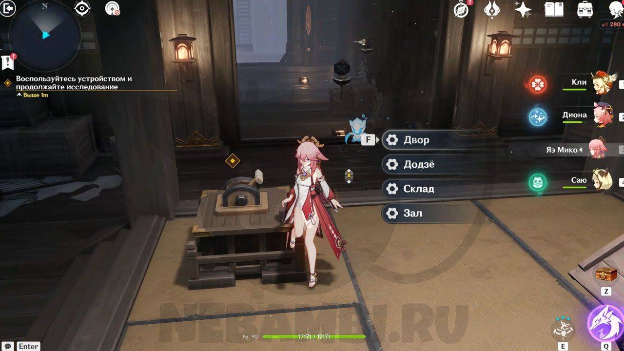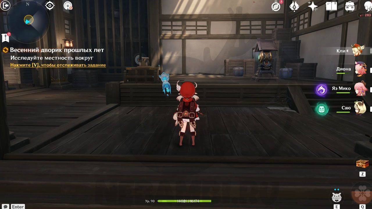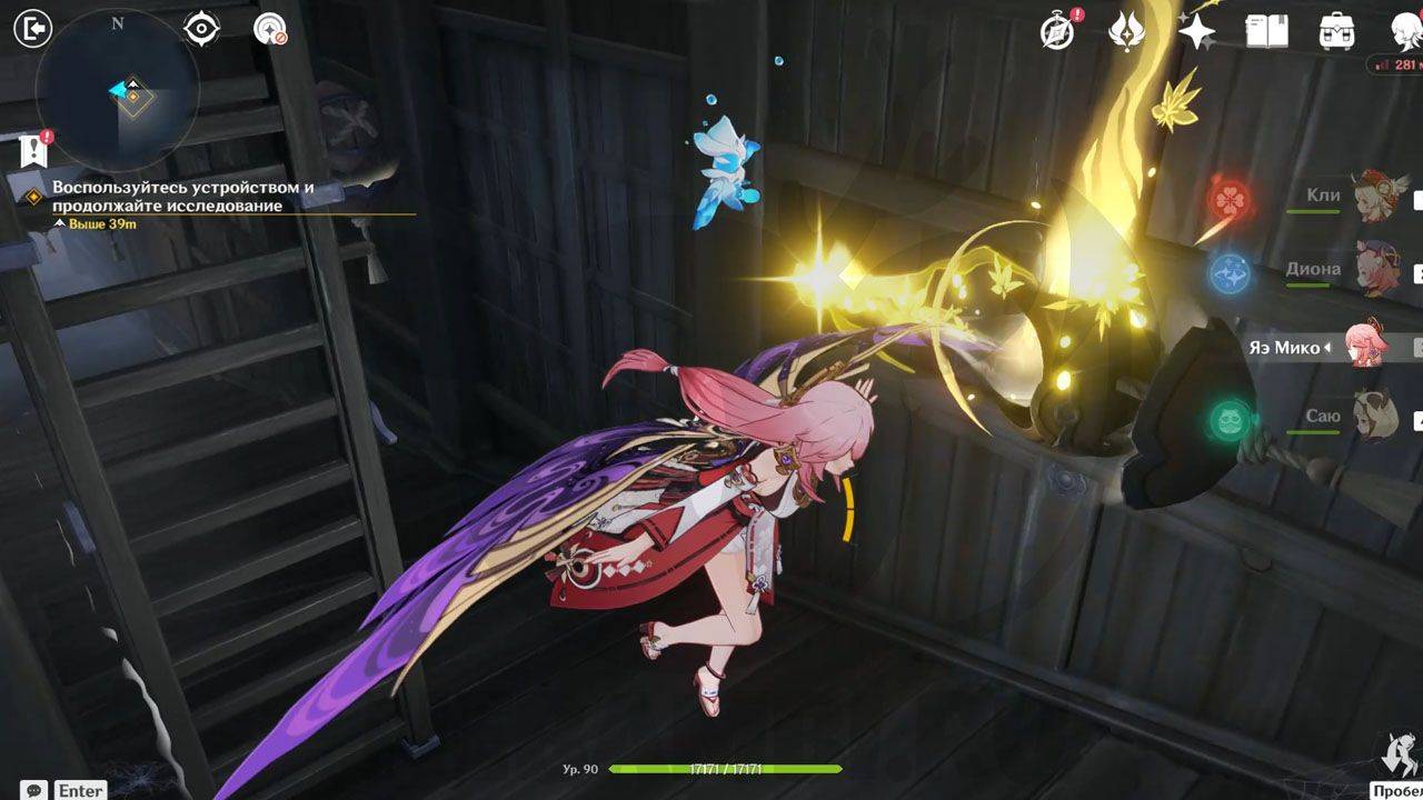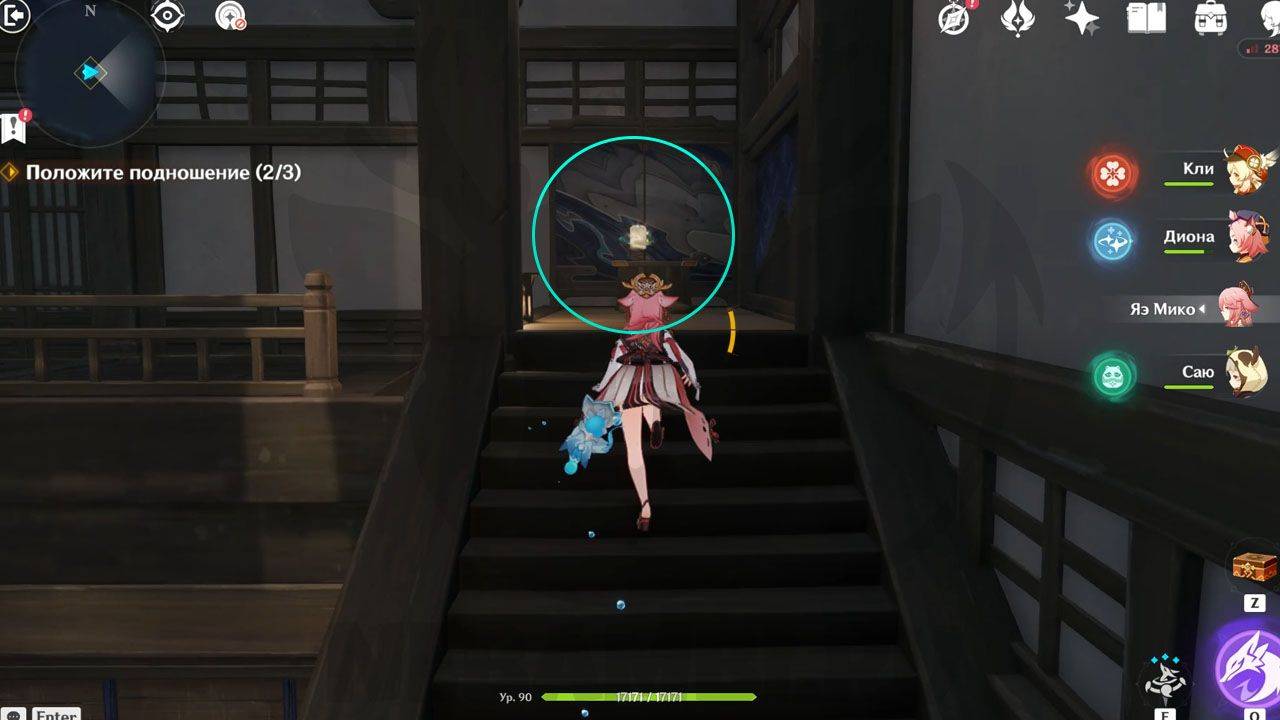 После сражения просто ударьте по треугольному механизму, чтобы открыть проход в руины. Внутри Паймон сразу заметит какого-то человека. Он представится исследователем и скажет, что его зовут Эндзё. Его главная обязанность — разбор и перевод подсказок, которые помогут вам в испытании.