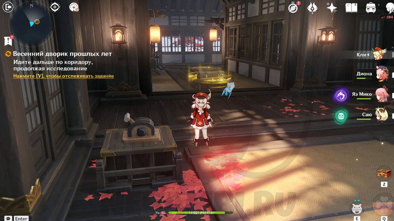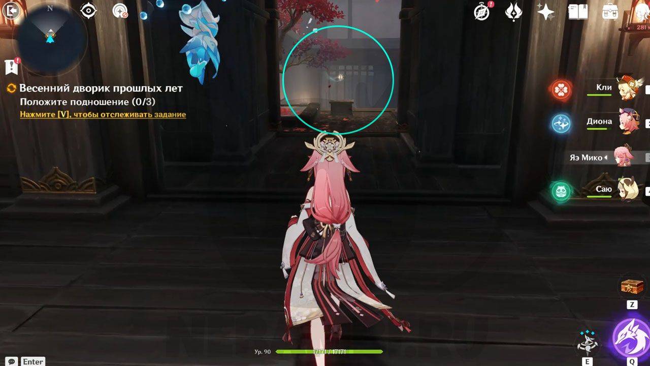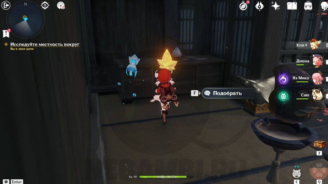 Оказавшись в отмеченной области, цель задания сменится на «Найдите тайную комнату по следам вишапов глубин». Исследуйте все три точки, после чего на карте появится отметка тайной комнаты. После победы над щенками разрыва активируйте механизм и пройдите внутрь.