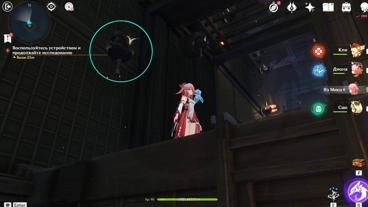 Там вы увидите место поклонения с энергией Вечной ночи. Подойдите к нему, чтобы энергия перешла на вашего персонажа. Это позволит взаимодействовать с механизмами в «неправильное» время суток.