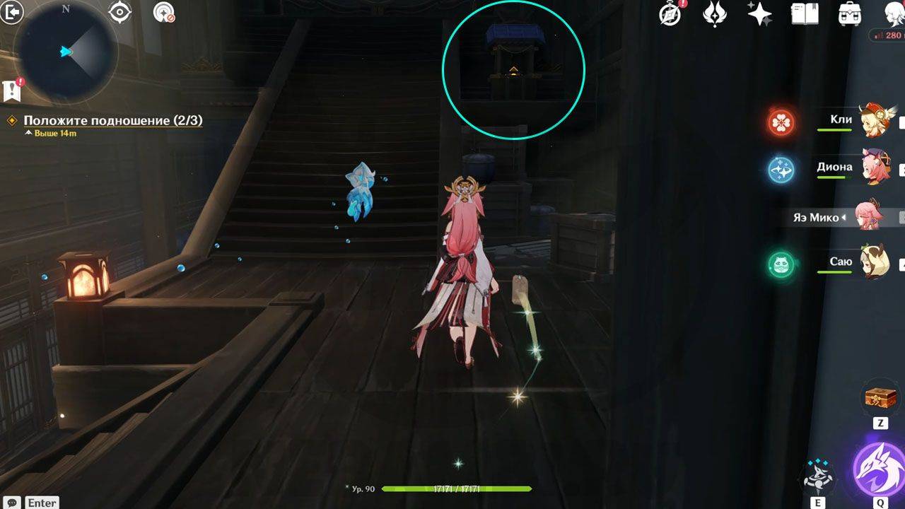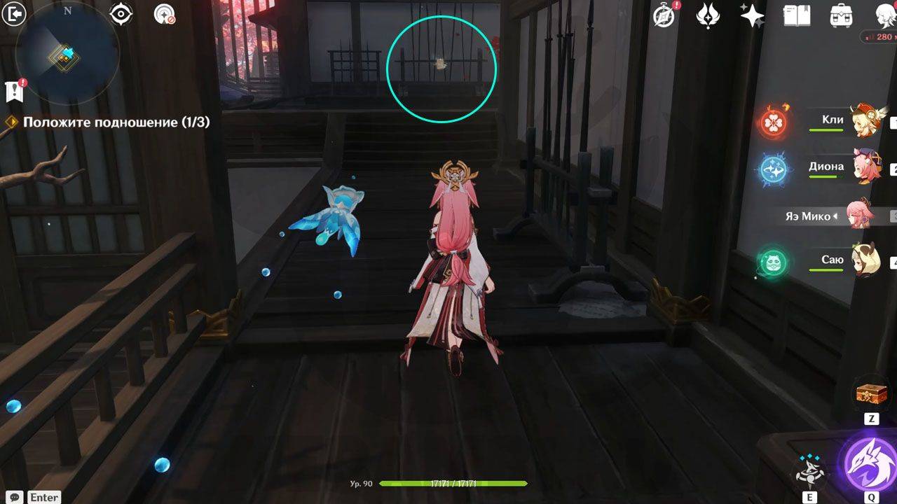 Поднимаемся дальше и находим вторую Омамори. Ее тоже нужно поднести к святилищу справа от лестницы.