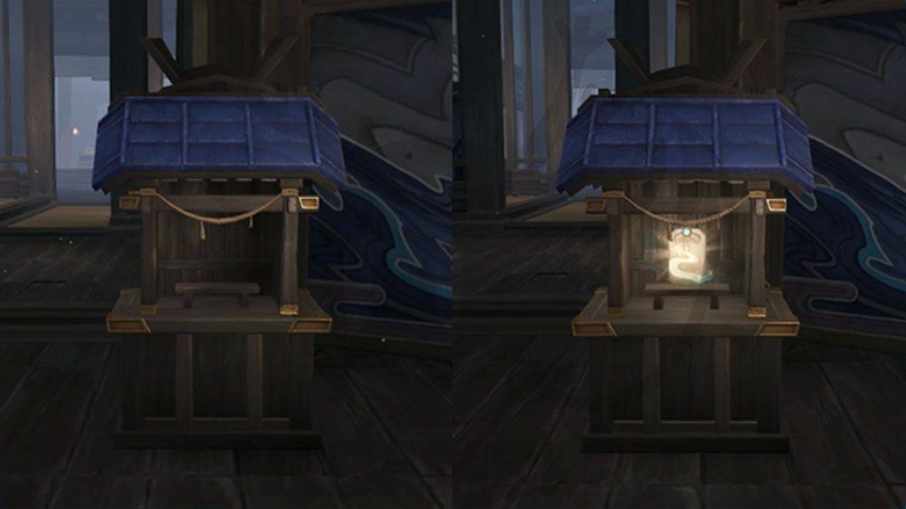 Прыгните вниз и подойдите к святилищам, чтобы поместить в них Омамори и открыть дверь.