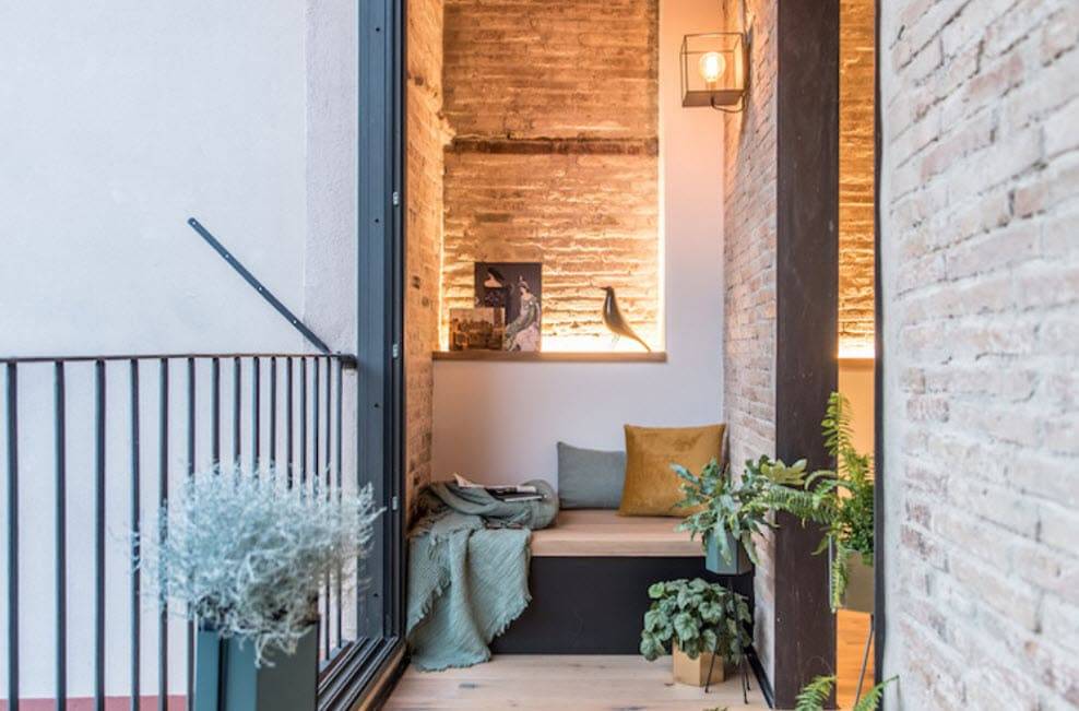 В палитре пусть преобладают оттенки коричневого и натуральной древесины, черный, серый, терракотовый цвет. Если балкон плохо освещен или имеет совсем маленькую площадь, возьмите за основу белый цвет. Он визуально увеличит пространство. Не забудьте о 2-3 ярких предметах в качестве акцентов.