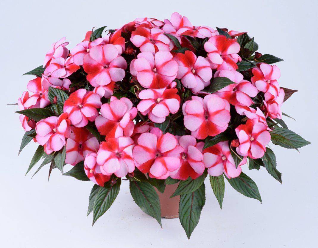 Благодаря интенсивной работе селекционеров появилось множество сортов и гибридов ампельного бальзамина, которые отличаются по размеру, окраске листьев и цветов.