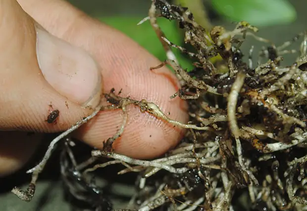 Галловая нематода представляет собой микроскопического червя, который паразитирует в прикорневой области бегонии. На стебле образуются наросты и воздушные полости, в которых развиваются личинки. Корни начинают загнивать, растение приостанавливает рост и может погибнуть. Пораженные корни бегонии удаляют, а растение поливают 0,05-0,2% раствором гетерофоса. Профилактической мерой борьбы является обеззараживание грунта 1% раствором формалина или обработка паром.