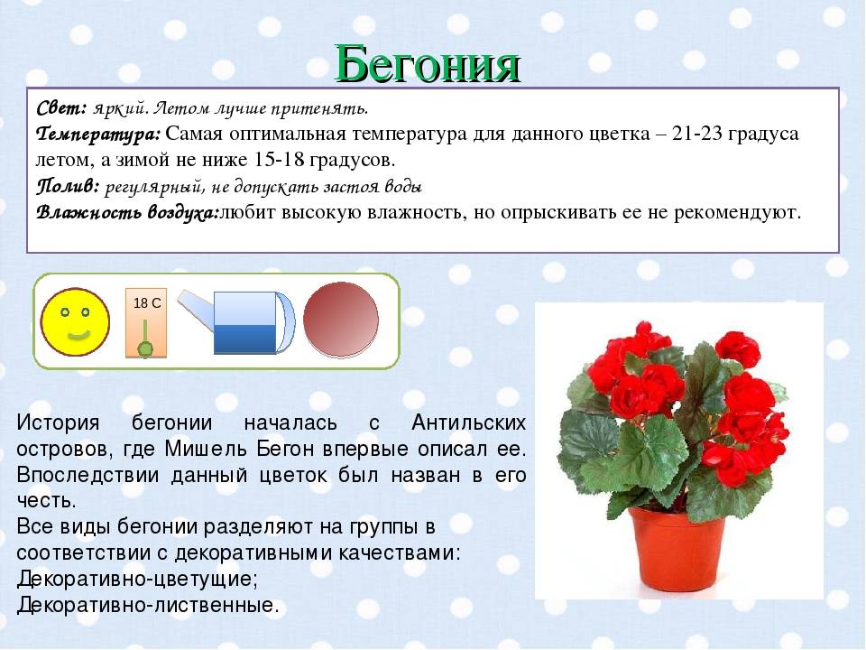 Уход и выращивание в домашних условиях растения бегония требует поддержания в помещении определенной температуры и влажности воздуха