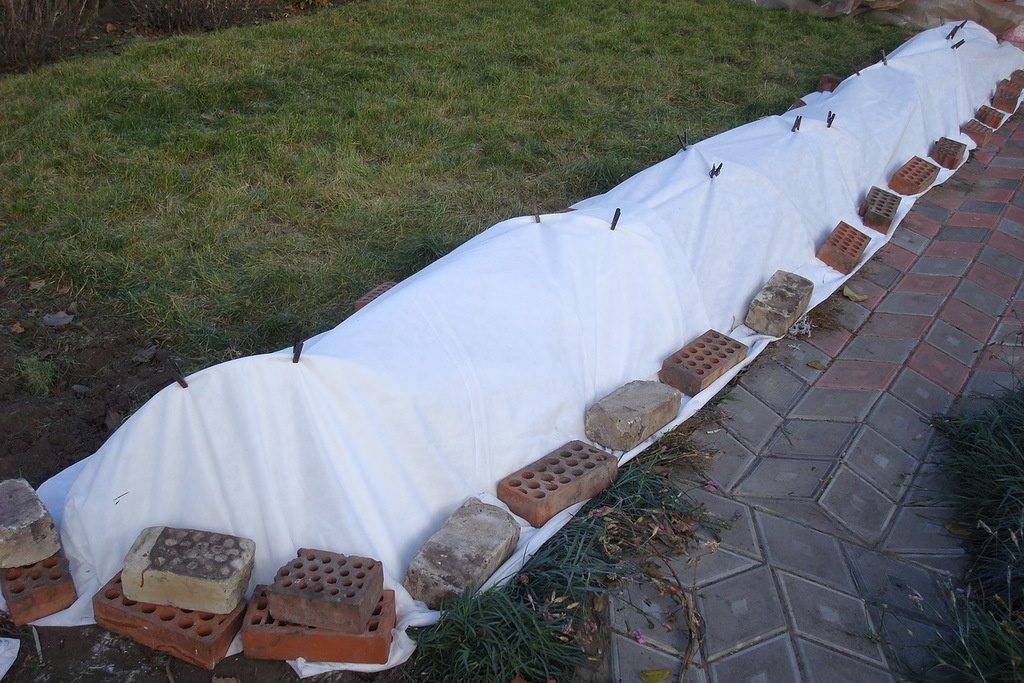 Розы могут пострадать уже при понижении температуры до -10 градусов. Поэтому обрезать, убрать растительные остатки, укутать их на зиму нужно до наступления таких низких температур. Чтобы роза подготовилась к зиме получше, специалисты рекомендуют оставить несколько цветков до вызревания плодов, тогда растение совершает полный годовой цикл и собирается перейти к периоду покоя. Подготовленные к зиме кустики окучивают землей, перемешанной с песком, на высоту не менее 25 см, укрывают еловым лапником. Сверху над ними делают каркас из металлической проволоки (или ставят деревянный ящик со щелями), укрывают все сооружение лутрасилом, края которого нужно хорошенько придавить к земле камнями или досками, чтобы ветер не повредил зимний домик нашей неженки. При необходимости (во время оттепелей) лутрасил можно приподнимать для проветривания. А если всю зиму будет лежать снег, то роза точно прекрасно перезимует.