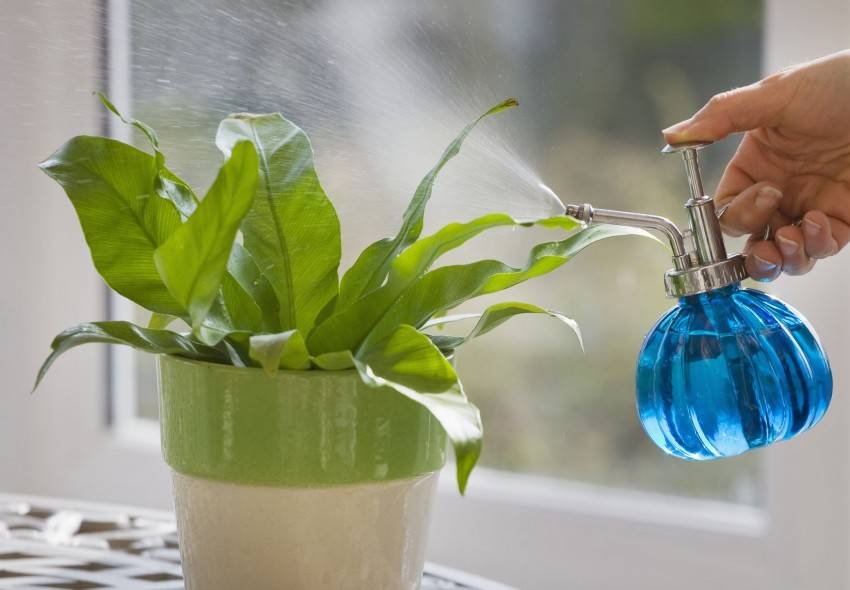 Нет необходимости опрыскивать. В зимний период воздух должен оставаться сухим. Желательно обеспечить хорошее движение воздуха вокруг растения, избегая при этом холодных сквозняков.