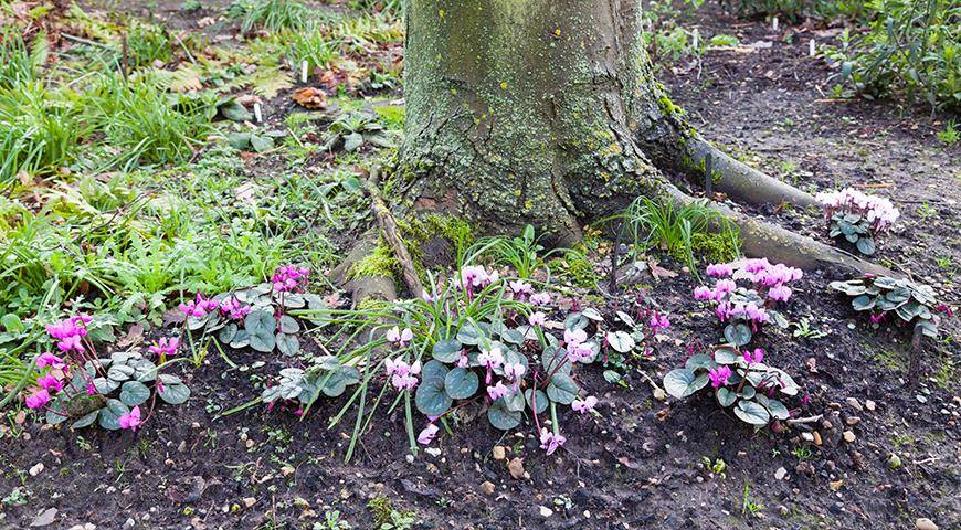 Требования к выращиванию у цикламена не очень высокие, но страдает он от малейшего переувлажнения, это и становится чаще всего причиной его гибели. Поэтому для посадки выберите высокое место в легкой тени с нейтральным или слабощелочным грунтом и хорошим дренажем. Пересадку цикламены переносят плохо, поэтому место подберите и подготовьте заранее, чтобы потом не пришлось его переносить с места на место: так вы никогда не дождетесь цветения.