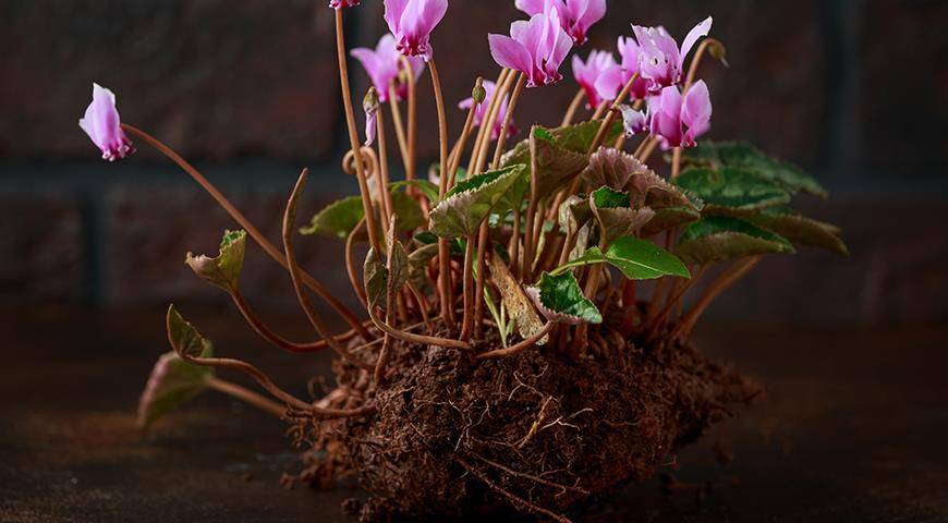 Корни у цикламена неаполитанского вырастают из верхней части клубня, поэтому его сажают на глубину не менее 10 см.