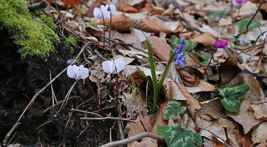 Цвести цикламен косский будет в апреле, одновременно с первыми мелколуковичными цветами, поэтому сочетайте их смело: фиолетово-розовые цветки цикламенов, синие пролески, пушкинии и мускари, сиреневые хохлатки и белые подснежники, без сомнения, украсят ваш сад весной.