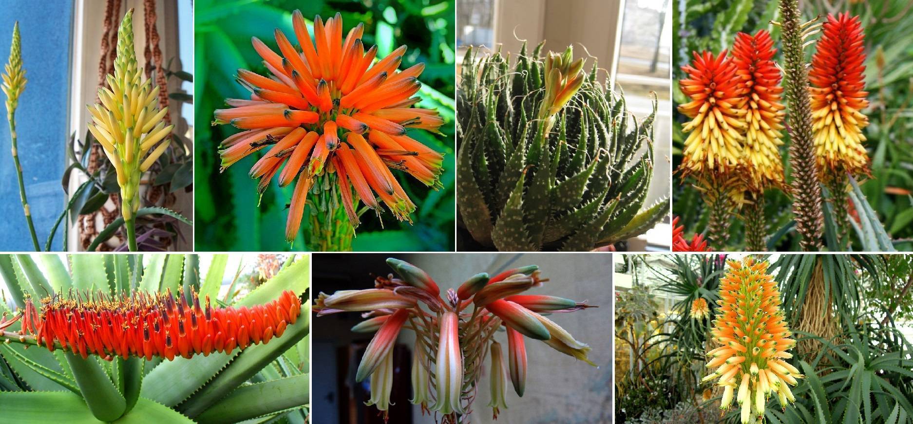 Разнообразие видов алоэ позволяет садоводам собирать целые коллекции одной культуры. Более 500 видов насчитываются по всему миру, отличаются множеством характеристик, в том числе и цветением. Разные виды алоэ цветут желтыми, красными, оранжевыми цветами в возрасте после 10 лет. Цветение может наблюдаться на протяжении 6 месяцев.