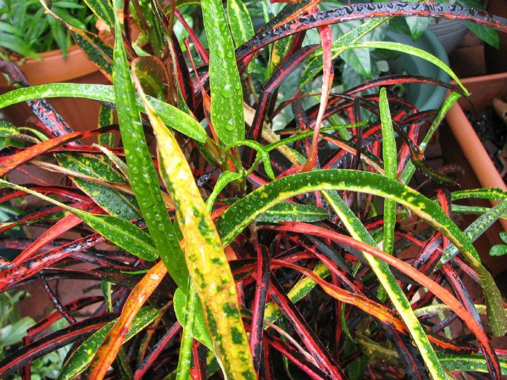Из всех видов (их насчитывается 17) только кодиеум вариегатум, который мы и называем кротон (семейство Молочайные), культивируют как комнатное растение.