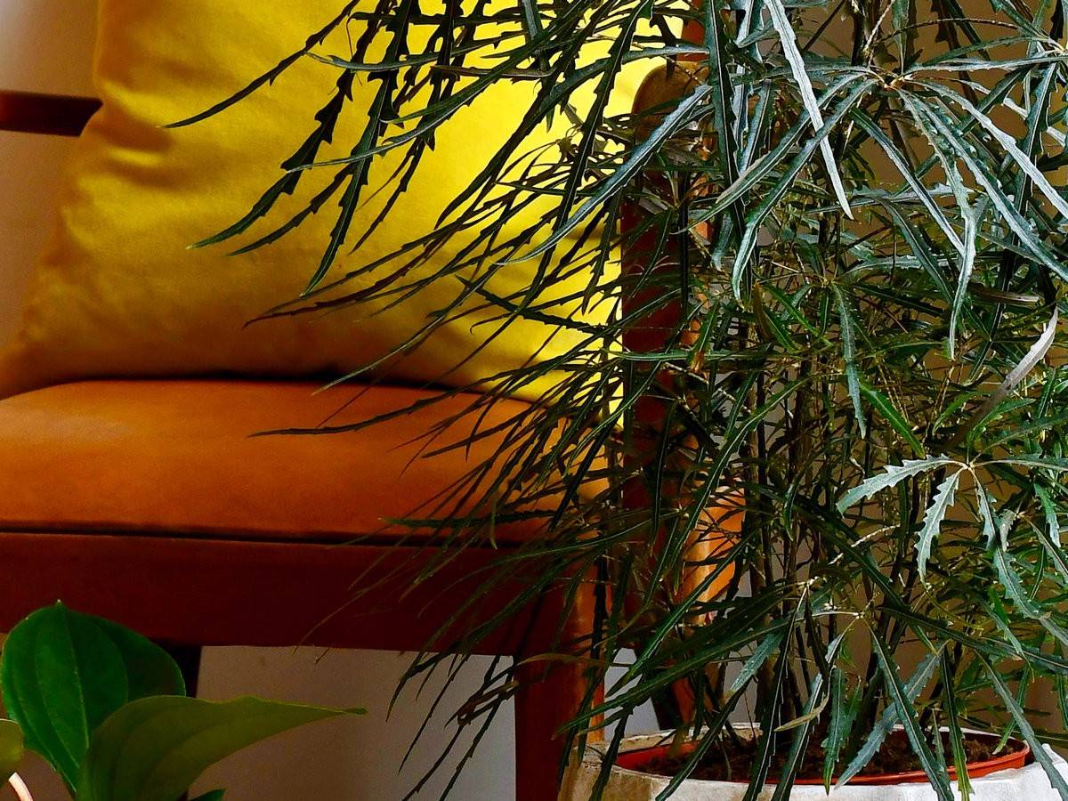 Среди комнатных исполинов-растений для сольных партий, дизиготека – одна из самых эффектных красавиц. Это растение скорее ностальгическое, чем модное, но заслуживающее новой карьеры в современных интерьерах. Резные, несколько чопорные листья, строгие силуэты, эффект безупречной холодности и экзотичности у дизиготек помогают эффектно разделить пространство.