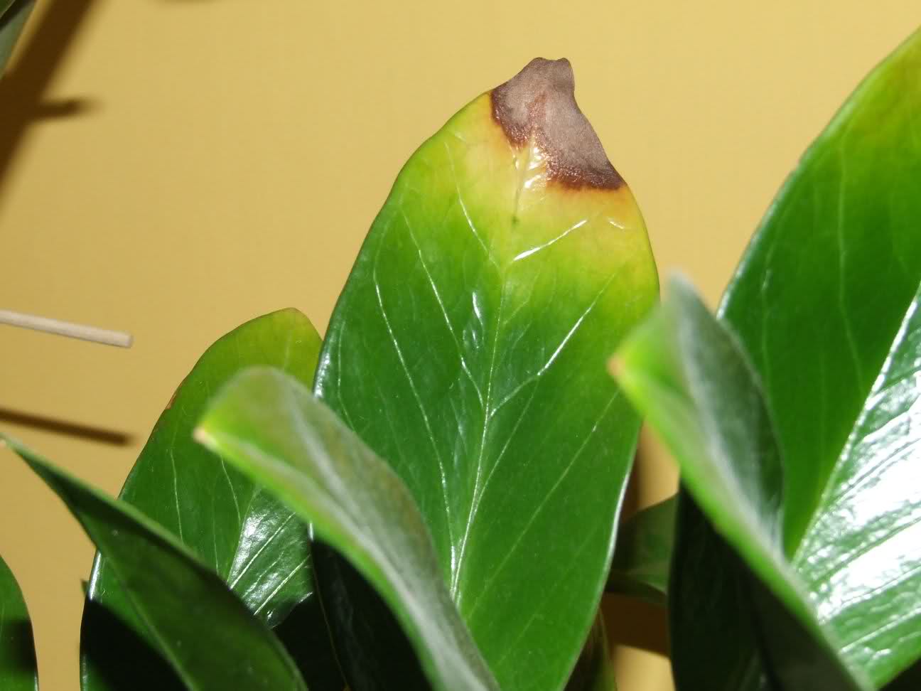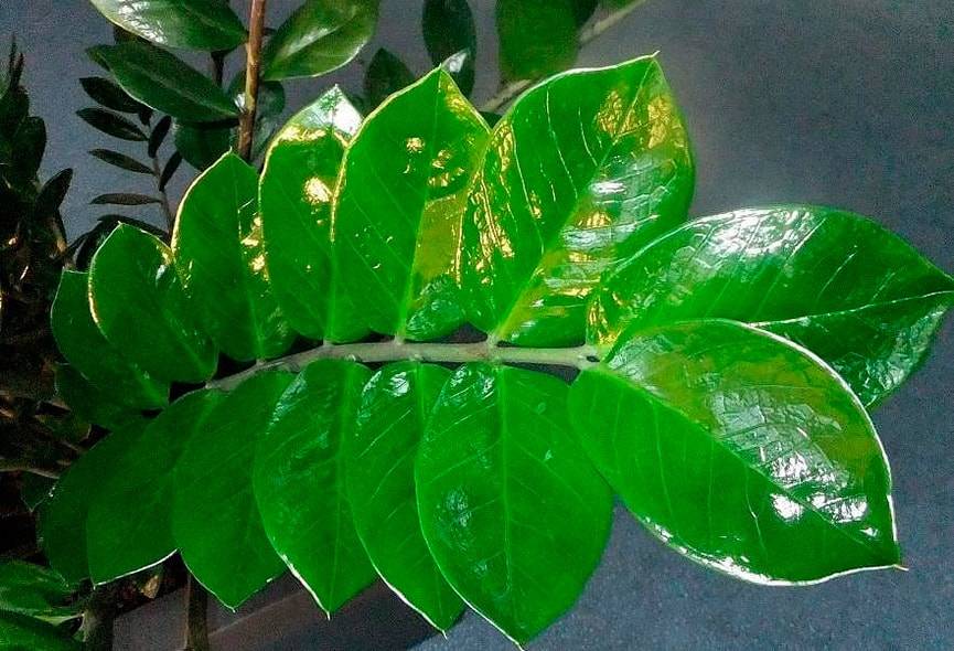Так выглядят листья замиокулькаса при близком рассмотрении