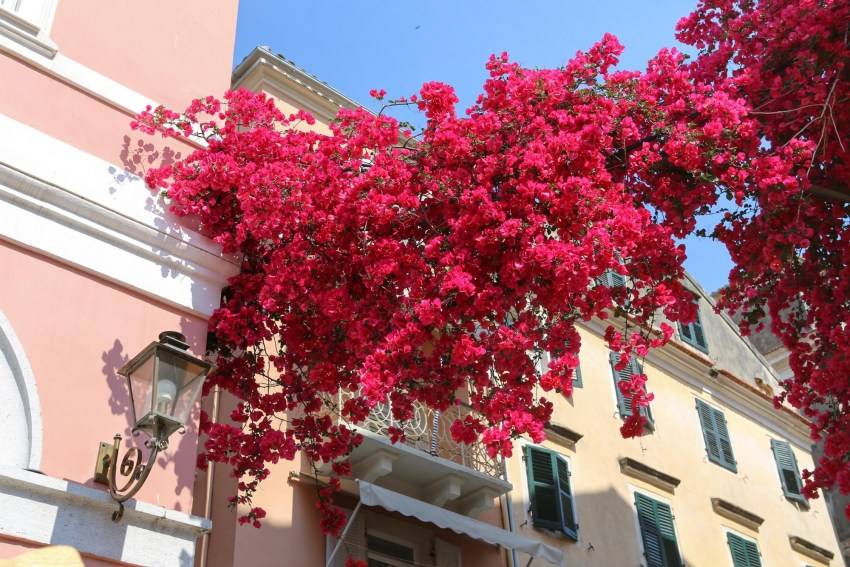 В летнее время бунгевиллия отлично чувствует себя на балконах, террасах, во дворе среди клумб на солнечной полянке.