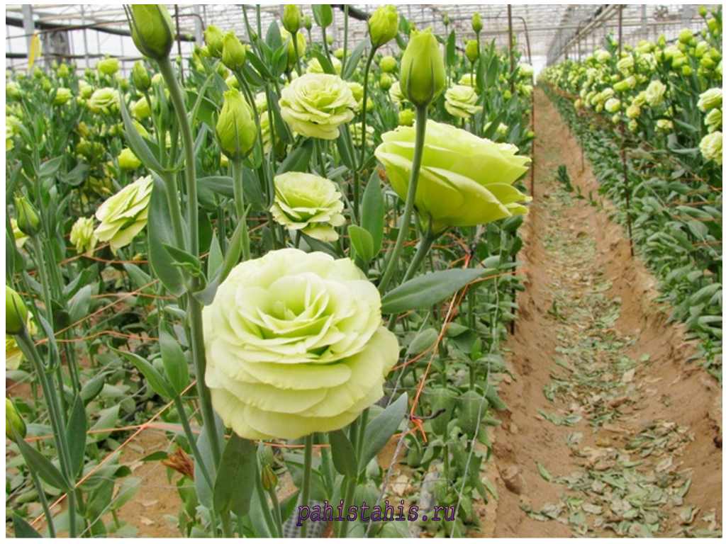 У высоких эустом побеги часто слишком тонкие, слабые, им нужна опора. При первых признаках полегания, переламывания веточек растения нужно подвязать к колышку или натянуть ряды бечевки для больших посадок.