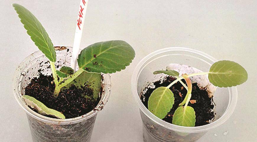 Когда сеянцы глоксинии подрастают, их рассаживают в отдельные горшки диаметром примерно 6–8 см. Зацветают они в подходящих условиях через 3–5 месяцев.