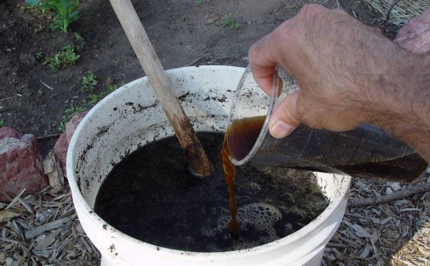 - Влить в ямки 3 ведра воды. После высыхания земли внести минеральные и органические подкормки: смесь из 1 ст. л. мочевины, сульфата калия, садовой земли, песка, торфа и перегноя. Компоненты тщательно размешать.