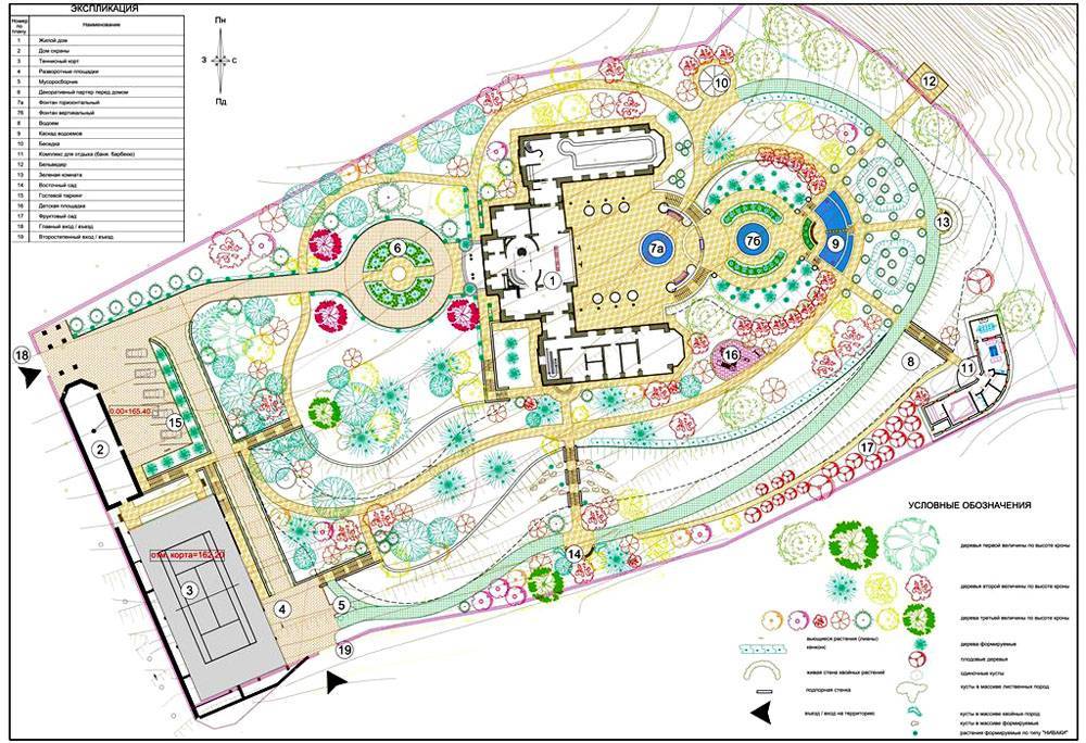 Профессиональный проект распределения растений для озеленения участка возле загородного особняка