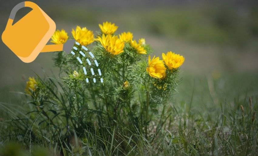 Адонис весенний — влаголюбивый многолетний куст, поэтому требователен к количеству влаги: