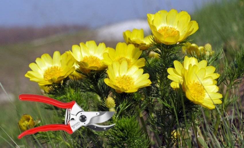 - обрезать адонис следует аккуратно, не срезая слишком большие части стеблей;