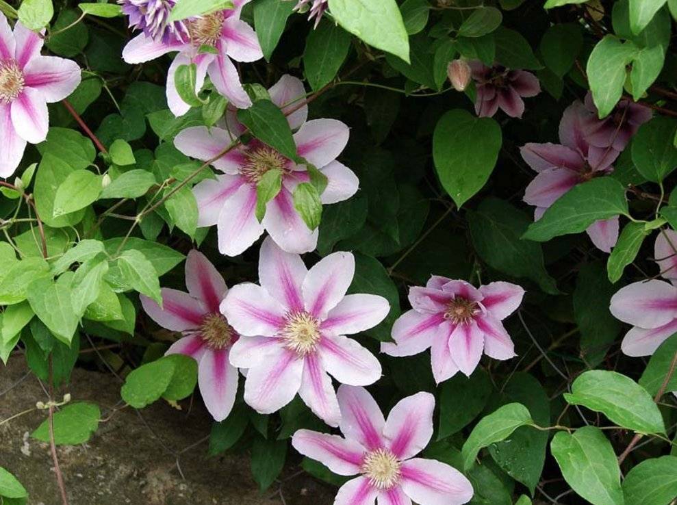 Также клематисы можно высаживать рядом с деревьями и другими кустарниками, но при этом нужно следить за корневой системой всех растений, чтобы не было проблем при росте. Хорошо цветы соседствуют с хвойными деревьями, грушей, акацией, бузиной и скумпией.