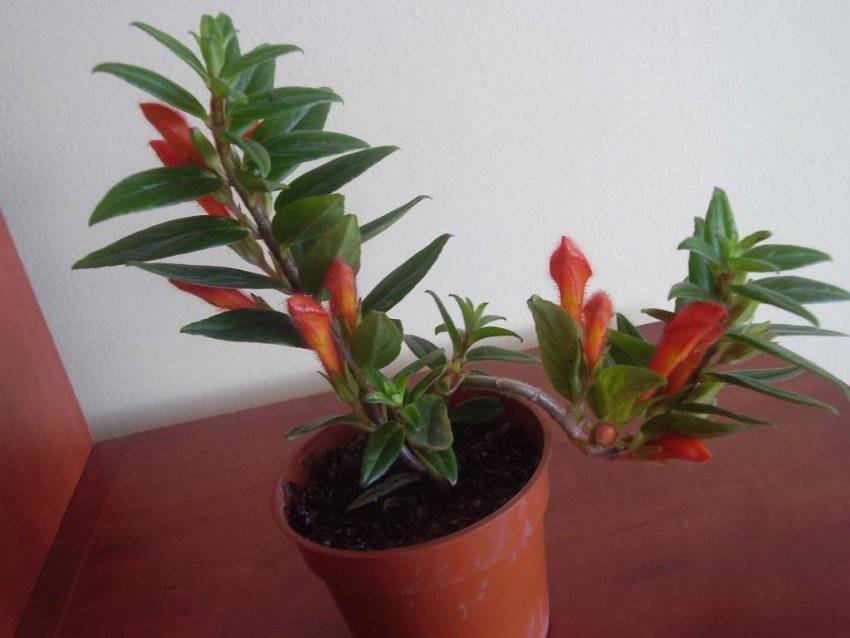 Колумнея достаточно быстро разрастается, вырастая на 50 см за год. Уход за ней включает также обрезку кроны после цветения. Это необходимо для формирования красивого куста и стимулирования следующего цветения.