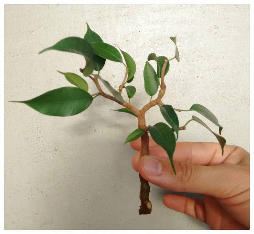 Формирование фикуса Бенджамина в форме бонсай необходимо начинать сразу же после укоренения саженца. Последний несложно получить из черенка, опущенного в воду комнатной температуры. Для этого нужно:
