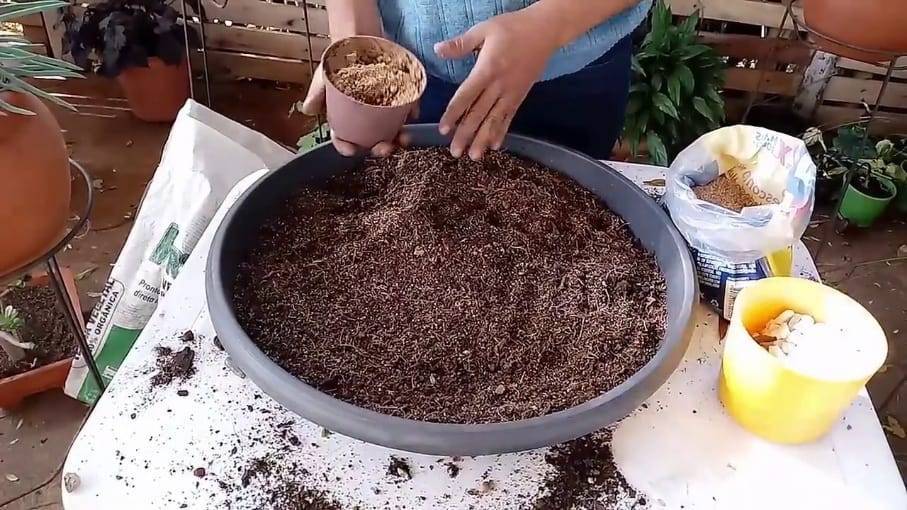 В качестве основы для составления субстрата используют листовую землю и кокосовый субстрат. С ролью разрыхлителей успешно справляются песок, перлит, кокосовые чипсы, вермикулит, мелкие крошки битого кирпича, серамис, орхиата, маленькие камушки для аквариума. Добавляют и удобрения – биогумус, гранулированный либо перепревший навоз, перегной.