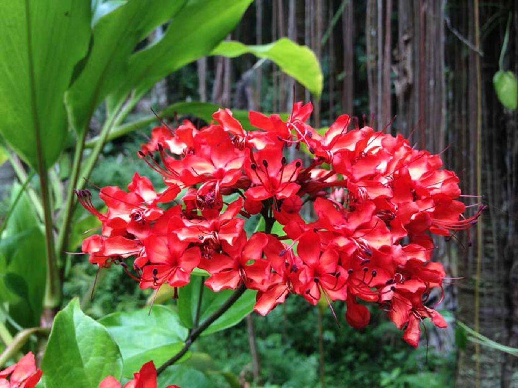 Вечнозеленый кустарник с цветами ярко-красного оттенка. Клеродендрум блестящий – это единственный вид, который при благоприятных условиях способен цвести круглогодично.