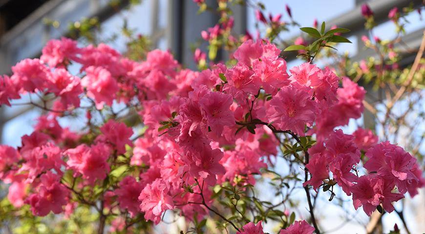 - На восточной стороне — азалия, диффенбахия, плющ, фуксия, пеларгония и выгоночные луковичные. Из луковичных чаще всего в зимних садах выращивают гиацинты, нарциссы, тюльпаны и крокусы, выгонку которых можно делать в зимнее время.