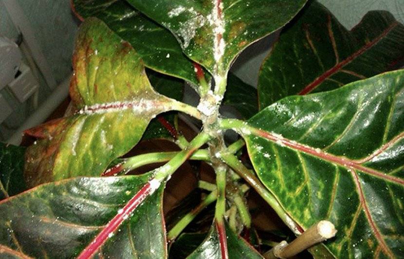 Часто при несоблюдении условий содержания Кодиеум атакуют щитовки и паутинные клещи. В борьбе с вредителями применяют народные методы, например, мыльный раствор, теплый душ, а также инсектициды: Актара, Фитоверм, Актеллик.