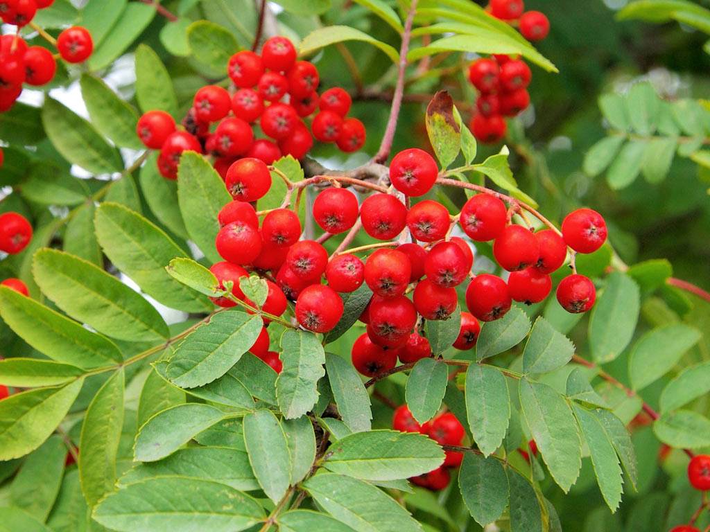 Красная, или обыкновенная, рябина — плодовое дерево, вырастающее до 12 м высотой. Благодаря красивым сложным листьям, приобретающим к осени яркую оранжево-красную окраску, рябину часто используют в качестве декоративного растения для озеленения улиц и дачных участков. Сочные коралловые плоды рябины издавна используют для приготовления лекарственных средств и в кулинарии. Гроздья не осыпаются вплоть до зимы, что привлекает в сад многие виды птиц. Уход за рябиной минимален, дерево отличается неприхотливостью, засухоустойчивостью, морозостойкостью. Помимо обыкновенной в ландшафтном дизайне часто используют мелколистную и детпромежуточную рябину.