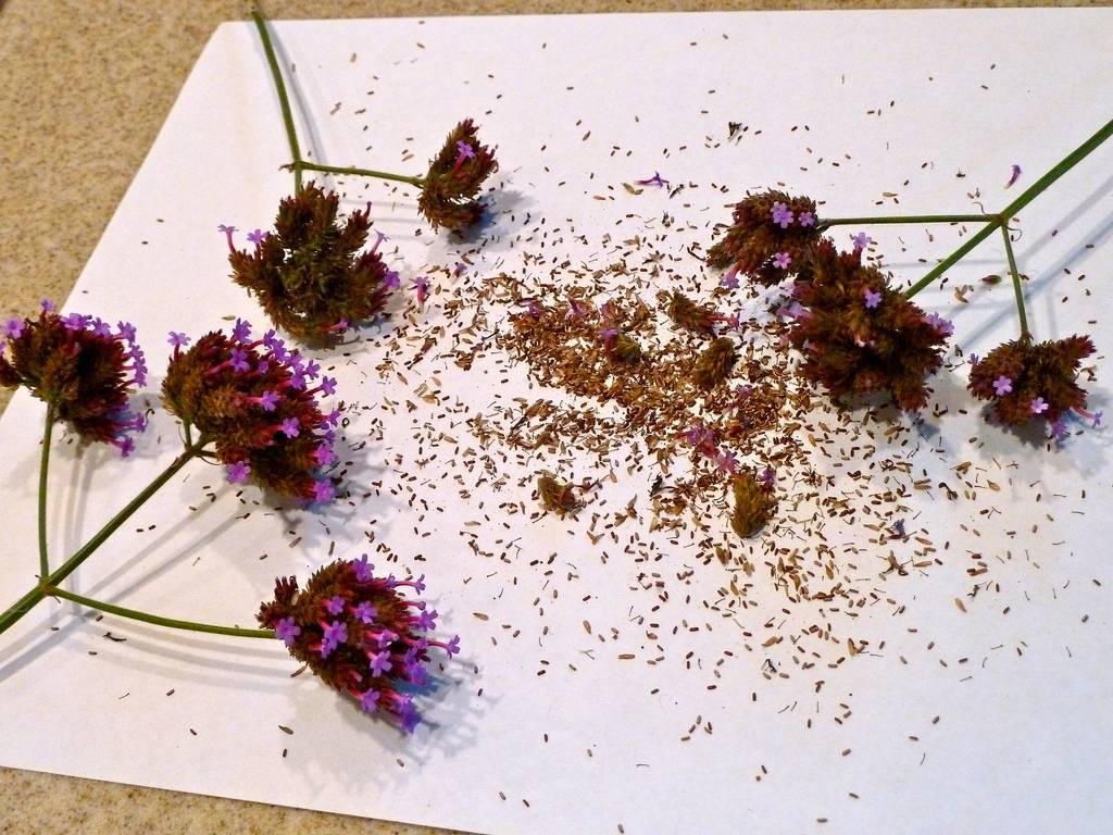 Для получения собственных семян с вербены, надо дождаться, когда коробочки на растениях созреют и потемнеют. После этого плоды собирают и размещают на ткани или газете, чтобы семена просушились. Иногда их равномерно перемешивают. Засохшие коробочки раскрывают и высыпают из них семена, которые хранят в тканевых или бумажных пакетах до посева.
