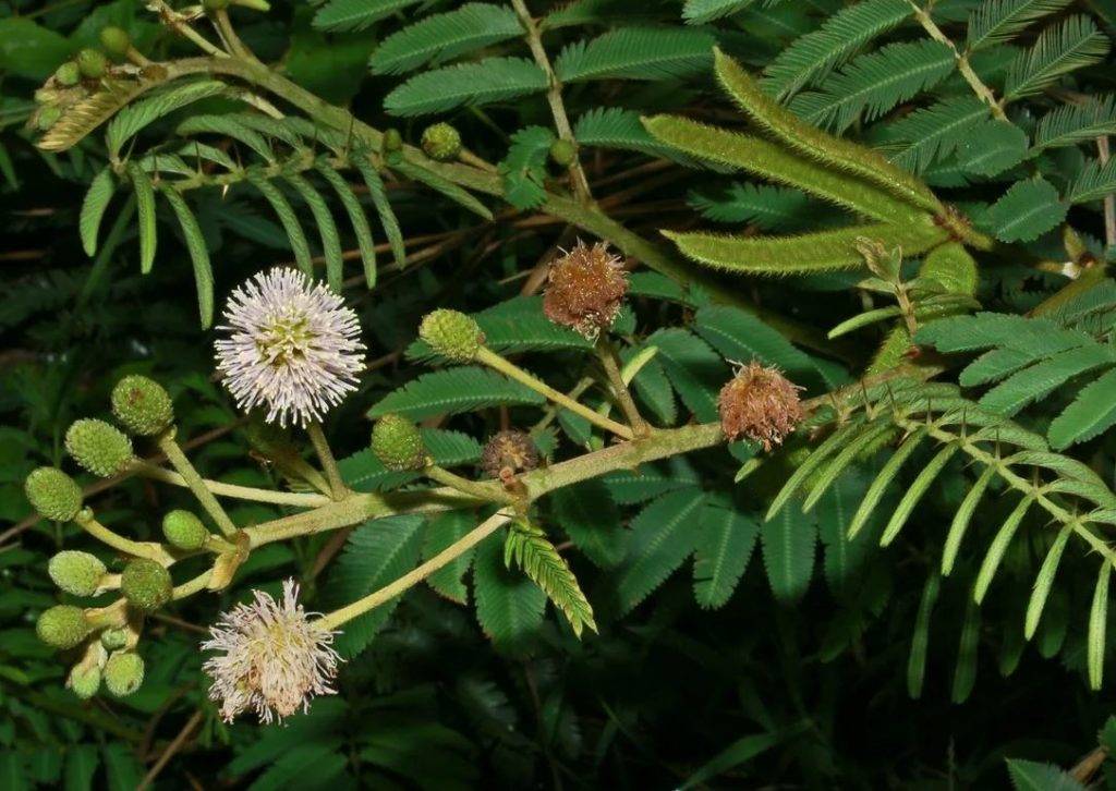 Мимоза стыдливая складывает листья в ответ на прикосновение
