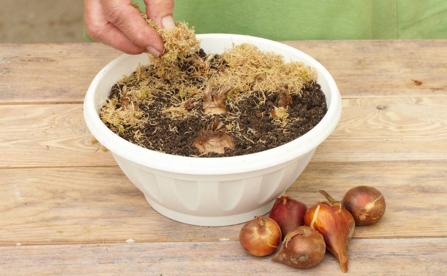 - Хранение луковиц и клубней. Использование сфагнума для заворачивания клубней и луковиц теплолюбивых цветов, выкопанных из открытого грунта, позволяет избежать их загнивания и пересыхания. Мох не только сохранит необходимую влагу в луковицах и клубнях, но и окажет антисептическое действие. Клубни и луковицы, хранящиеся в сфагнуме, не поражаются плесенью и серой гнилью и благополучно доживают до весенней посадки.