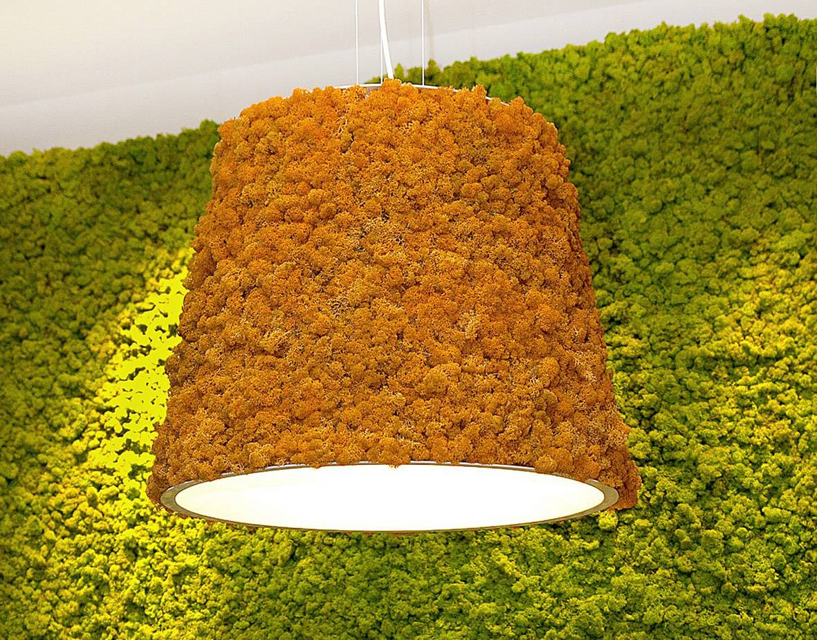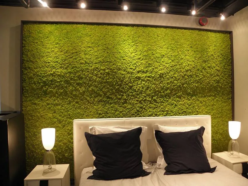 Декоративный мох в интерьере впервые предложили использовать норвежские художники-декораторы. Они представили на лондонской выставке инсталляцию из «оленьего», или «исландского», мха, украшавшую стену за изголовьем кровати.