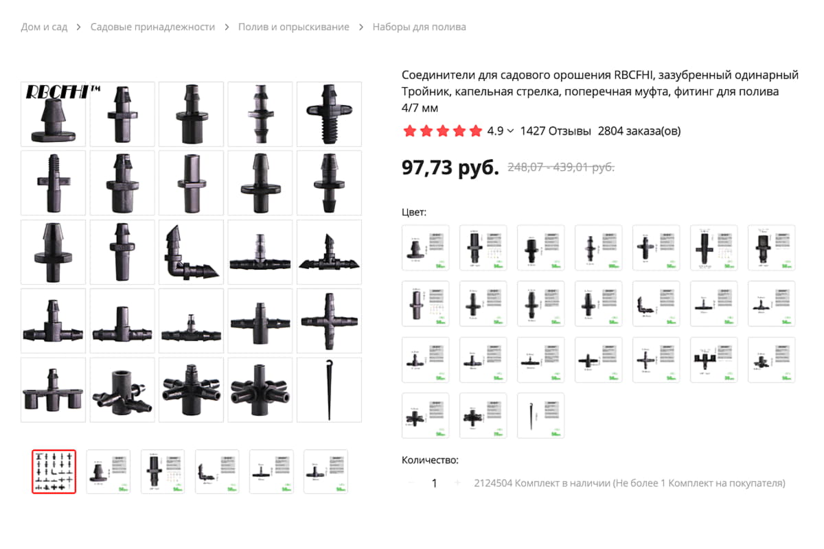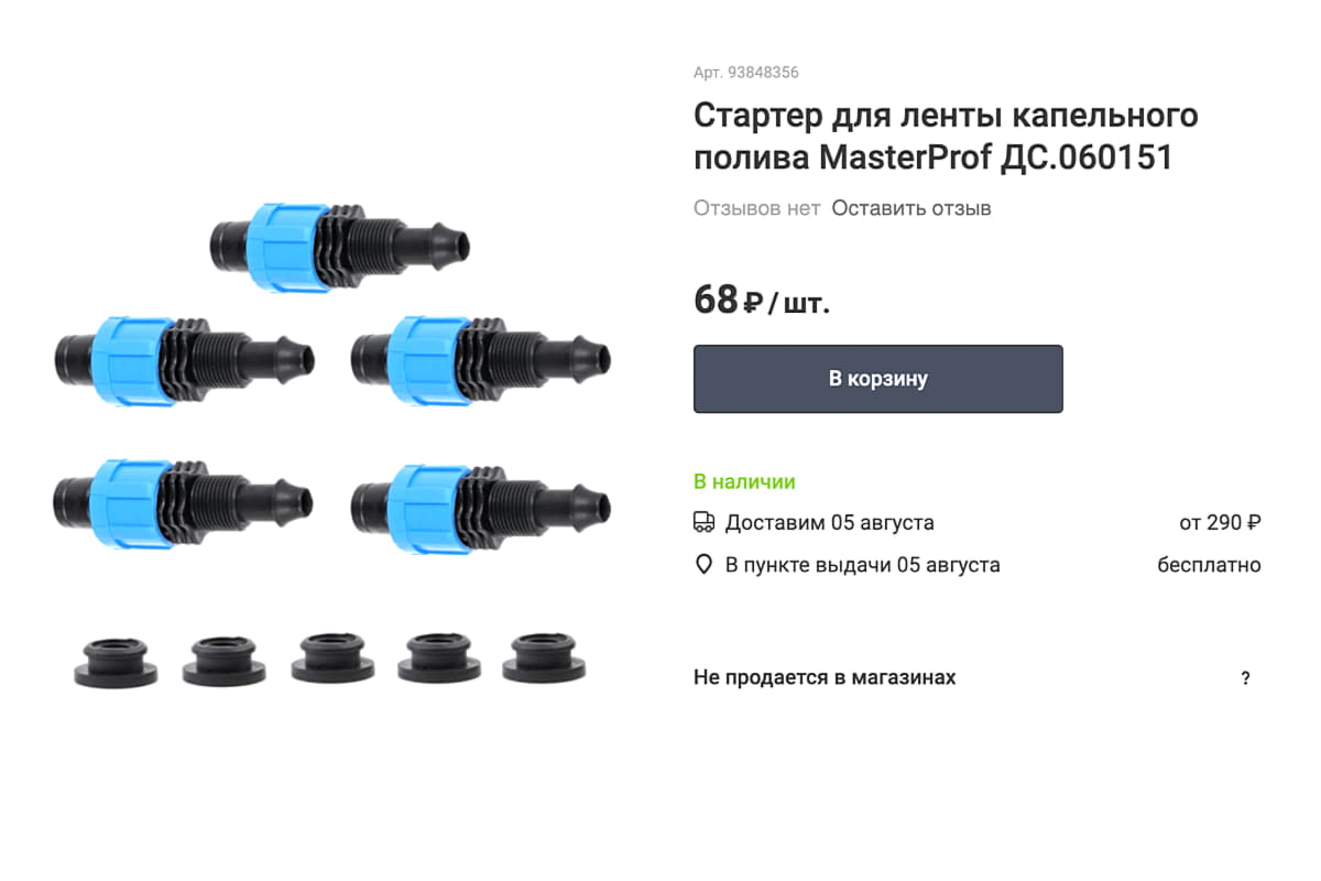 В магазинах продают готовые наборы для капельного полива. В них не нужно ничего рассчитывать и покупать отдельно — в комплекте уже есть все необходимое. Но такие наборы рассчитаны только на 2—4 десятиметровые грядки. У меня грядок больше, к тому же у них разные размеры, поэтому брать готовый набор не имело смысла.