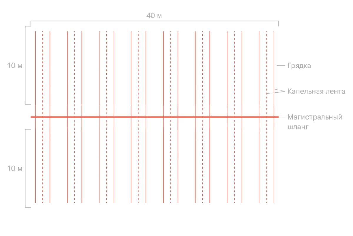 16 грядок × 2 капельные ленты × 10 м длина грядки = 320 м