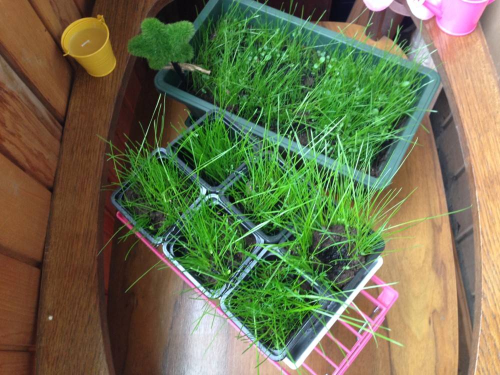 Нет, вам не нужно делать грунт на весь пол и засеивать им газонную траву. Посейте ее в контейнер или горшок (можно добавить и к цветущей поляне, о которой говорилось выше).