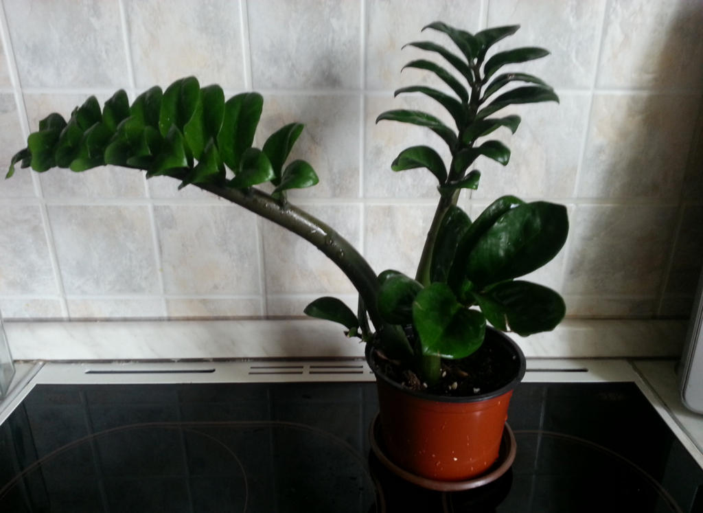 Как комнатное растение замиокулькас культивируется у нас сравнительно недавно. Это растение очень подходит для наших квартир, где центральное отопление создаёт в квартирах сухость воздуха близкую к пустыням. Кроме того, комнатное растение замиокулькас очень неприхотливо. Его можно забывать поливать, оно хорошо переносит яркое солнце и небольшое затенение, достаточно широкий диапазон температур (от +12 °C градусов зимой, до +30 °C и выше летом). Замиакулькас не надо опрыскивать, хотя опрыскивание и не приносит замиокулькасу никакого вреда.