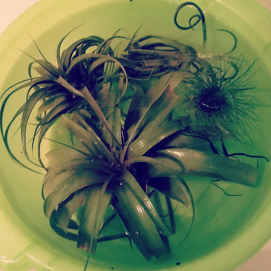 - Поместить тилландсию воздушную в емкость и оставить на 1-2 часа, чтобы растение напиталось влагой.