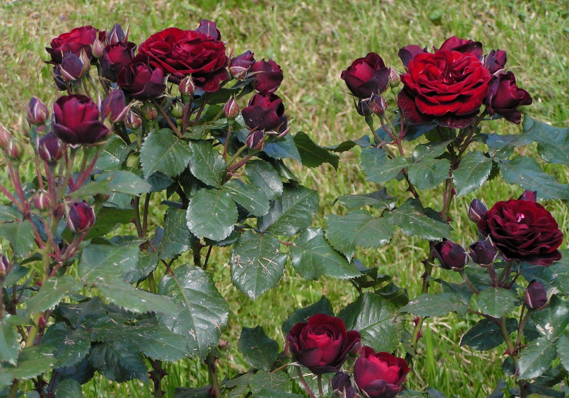 Удивительная темно-красная расцветка этой розы иногда кажется почти черной. Куст компактный, максимум- метр в высоту, шипов на нем немного, что значительно облегчает процесс ухода.