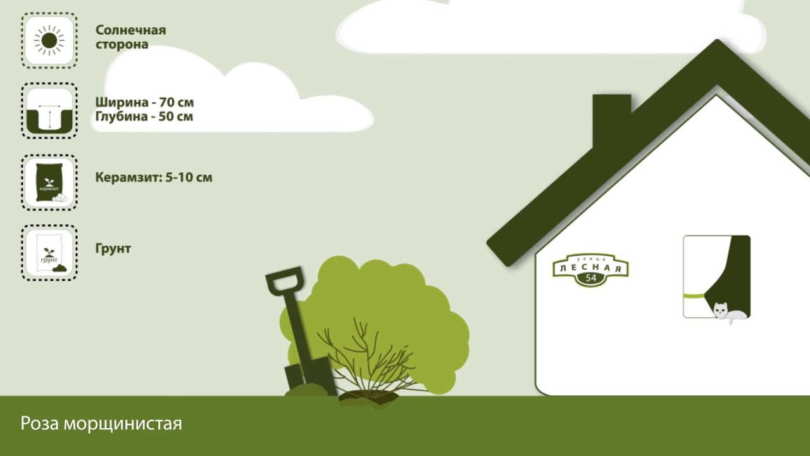 Свое название роза получила по форме листьев: они морщинистые, блестящие. Культура выносливая, неприхотливая, почти не болеет, устойчивая к засухе и морозам, хорошо приживается в городских условиях. Ее высаживают как одиночно, так и для формирования живых изгородей.