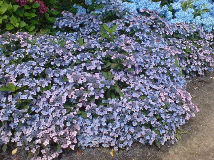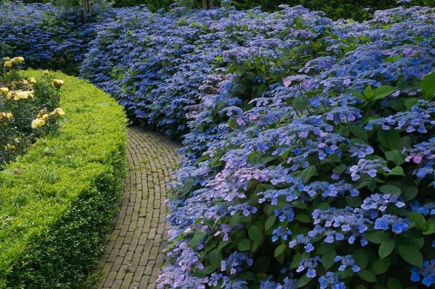 Гортензия Bluebird не требовательна к соседям. На одном участке с кустом могут выращиваться:
