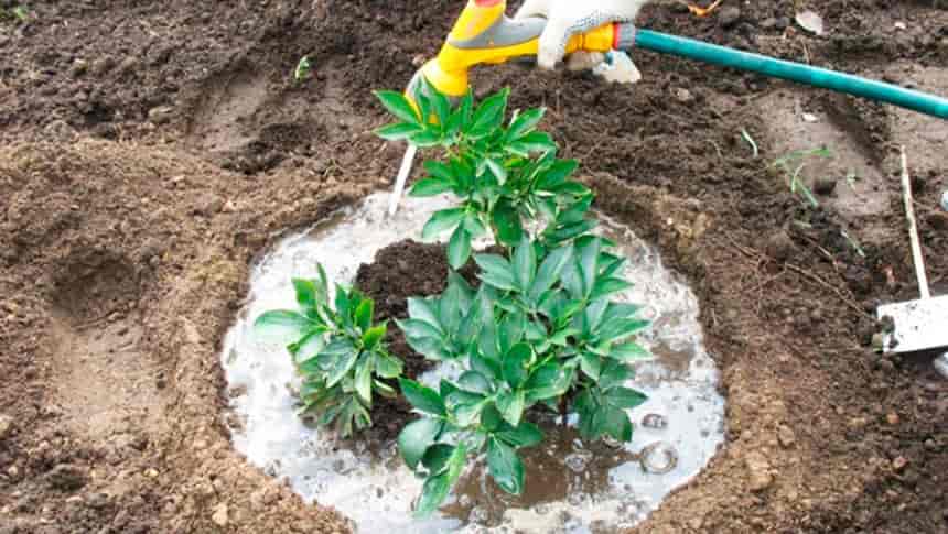 Важно! Азотные удобрения вносить при посадке нельзя, так как они оказывают угнетающее действие на корневую систему. Корневой черенок пиона нужно также подготовить