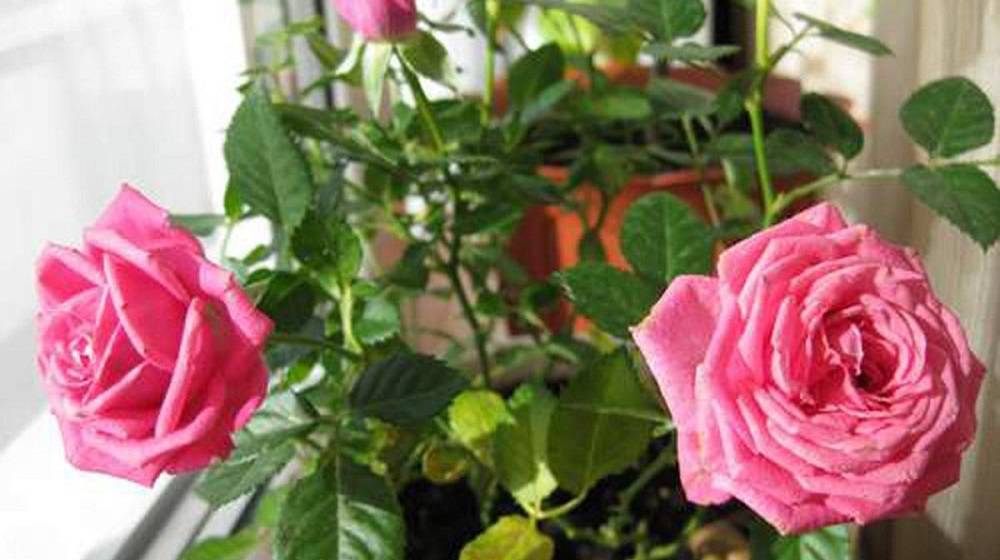 Главная проблема содержания розы в квартире – слишком сухой воздух, особенно в период работы отопления. Влажность повышается путём опрыскивания розы, расположения горшка с цветком на поддон с мокрым керамзитом, установка в комнате искусственных фонтанчиков.
